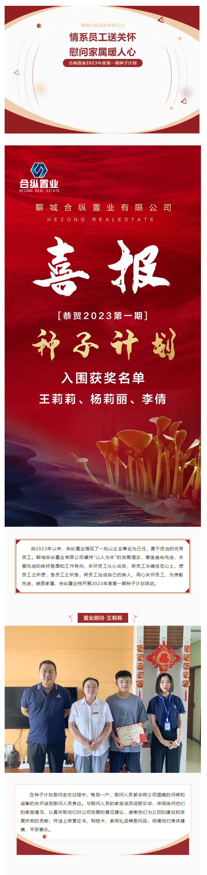 情系员工送关怀,慰问家属暖人心|合纵置业2023年度第一期种子计划