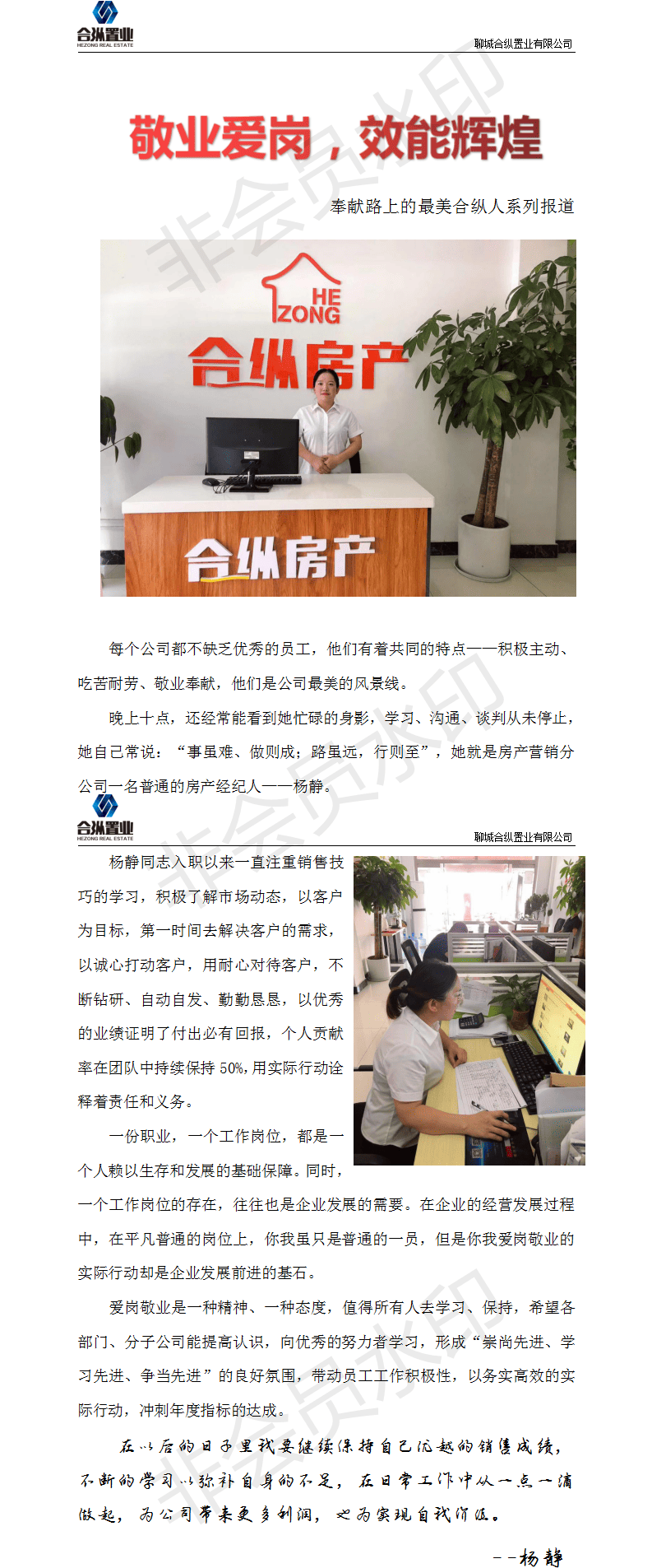 爱岗敬业,最美合纵人 | 合纵房产营销分公司—杨静