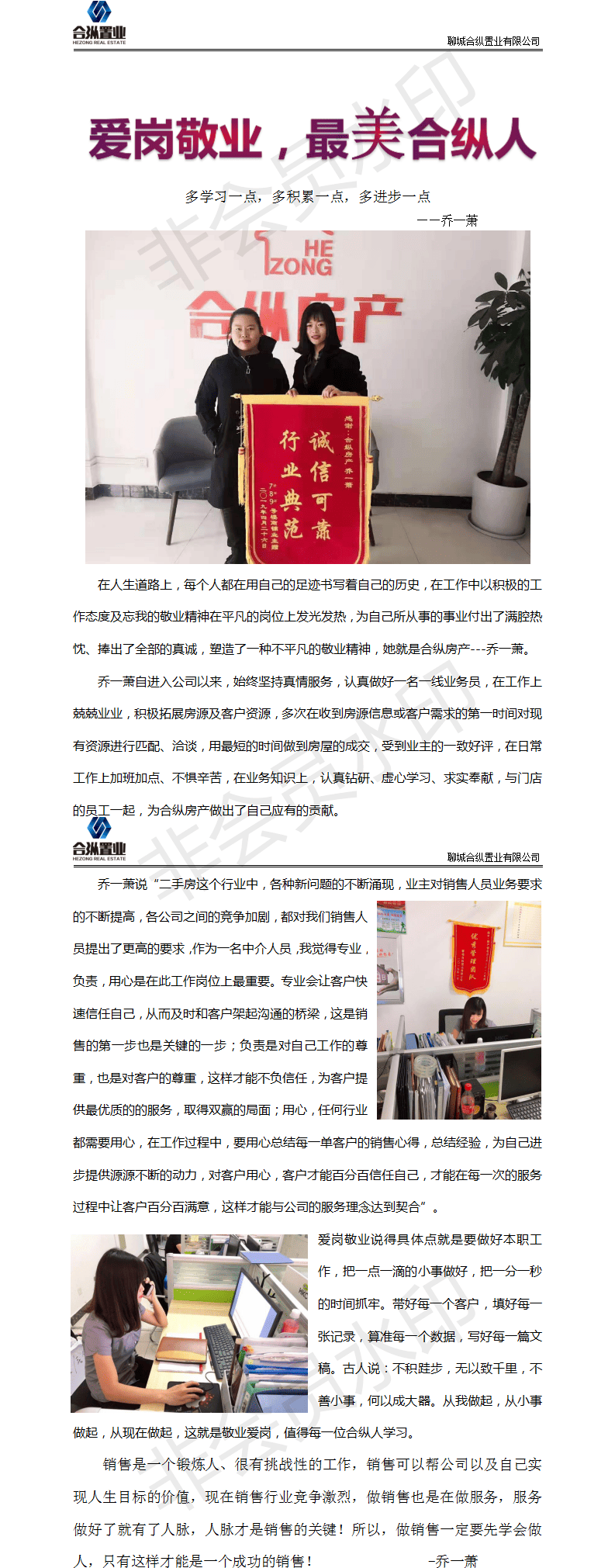 爱岗敬业,最美合纵人 | 合纵房产营销分公司—乔一萧