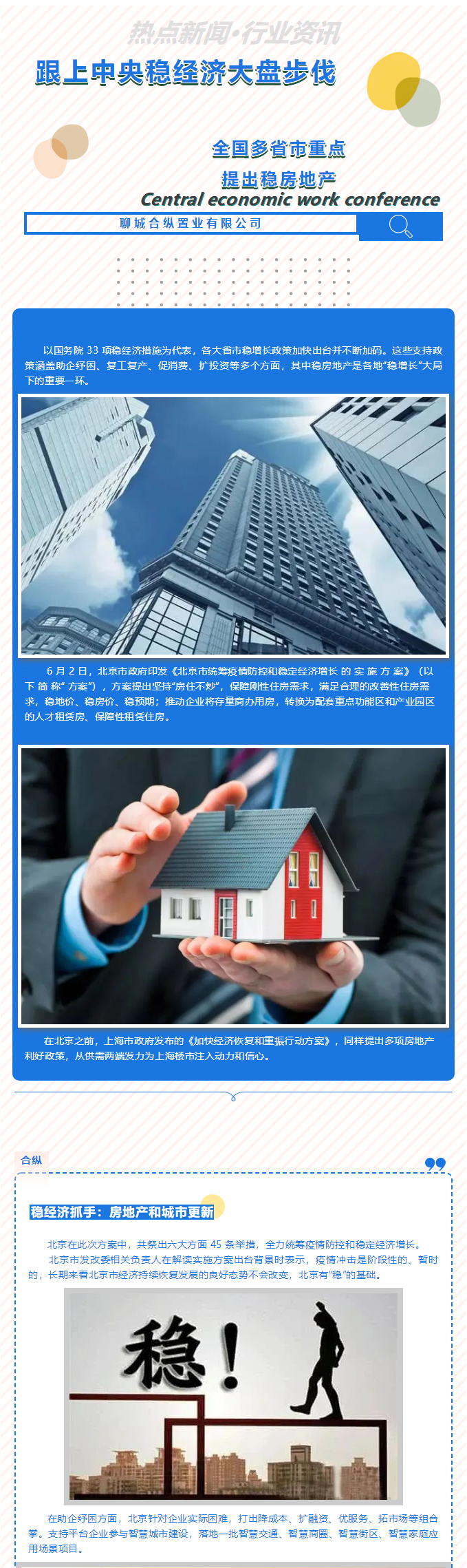 【合纵新闻】跟上中央稳经济大盘步伐·全国多省市重点·提出稳房地产