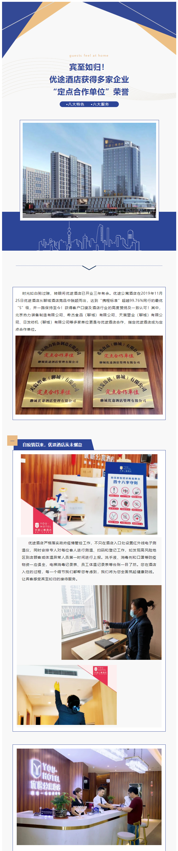 宾至如归!优途酒店获得多家企业“定点合作单位”荣誉