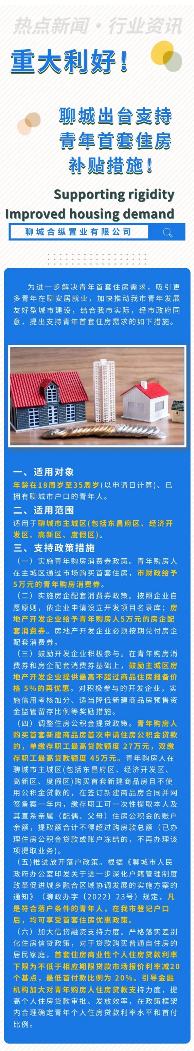 【合纵新闻】聊城最新出台支持青年首套住房补贴措施·江北水镇项目积极响应政府号召!