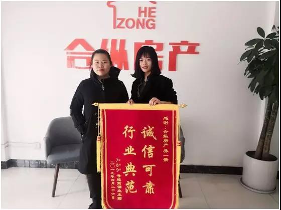 2019年4月27日上午8点,聊城合纵置业有限公司房产经纪分公司乔一萧收到业主送来的“诚信可靠,行业典范”锦旗。