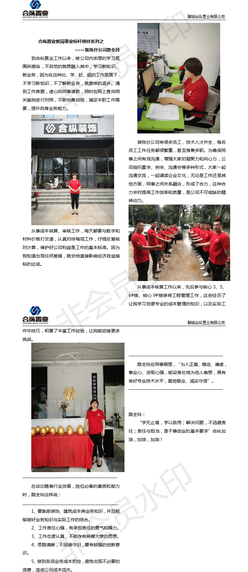 爱岗敬业,最美合纵人 | 合纵装饰分公司—路全玲